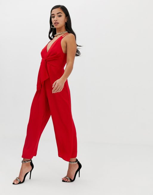 ASOS DESIGN petite jumpsuit with tie front and wide leg ASOS