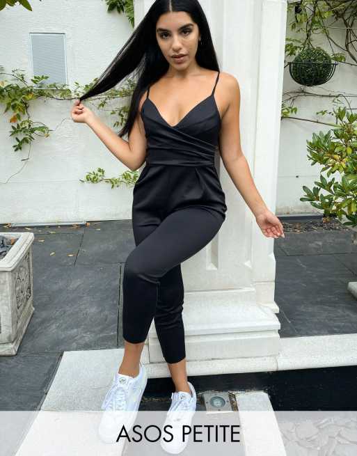 ASOS DESIGN petite scuba wrap front cami jumpsuit in black
