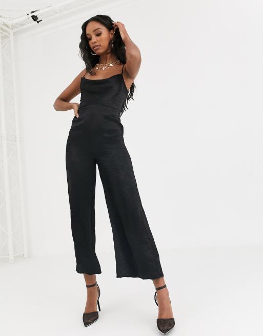 ASOS DESIGN satin cowl neck jumpsuit in black ASOS