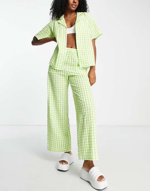 Green clearance gingham pants, Green Gingham Checked Bubble Hem Bardot Crop Top l Influence clearance