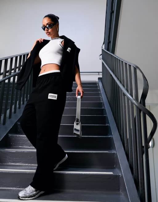 Oversized clearance black joggers, ASOS Weekend Collective oversized joggers with woven logo in black clearance