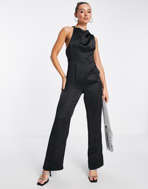 Pretty Lavish cowl neck asymmetric back jumpsuit in black