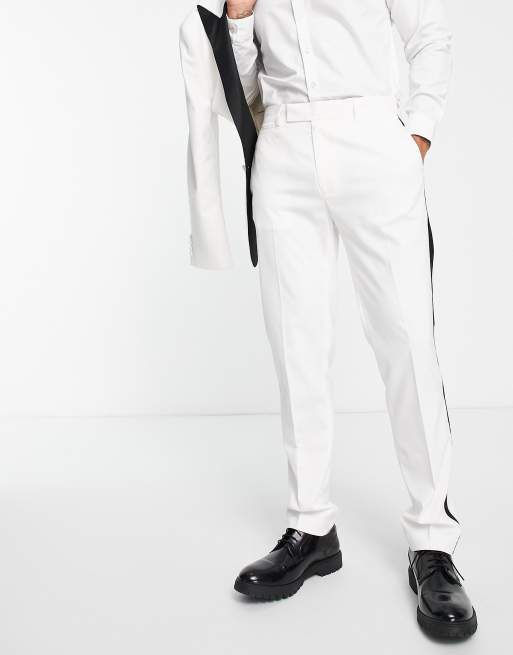 ASOS DESIGN slim tuxedo suit trousers in white