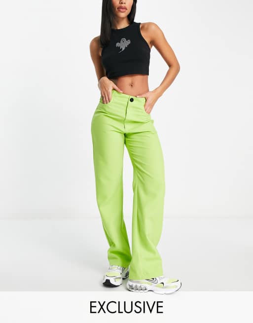 COLLUSION 90s fit baggy wide leg tailored trousers in lime green