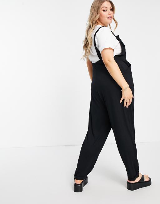 ASOS DESIGN Curve lounge jersey dungaree jumpsuit in black BLACK