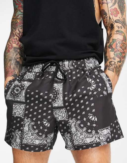 Black clearance bandana shorts, KIAYKL Men s Paisley Shorts Basketball Casual Print Running Workout Short Lightweight Athletic Bandana Track Short clearance