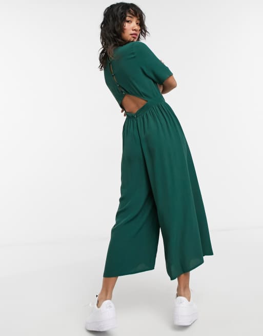 Asos clearance green jumpsuit, ASOS DESIGN petite button back jumpsuit in forest green clearance