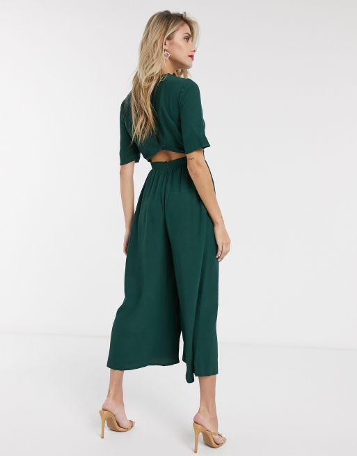 ASOS DESIGN tea jumpsuit with button back detail in forest green