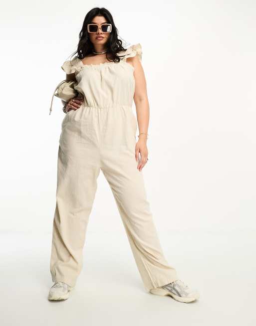 Wide Leg Jumpsuit White Linen Jumpsuit Plus Size Romper Long