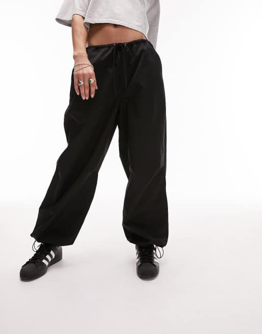 Topshop oversized balloon nylon cargo parachute trouser in black