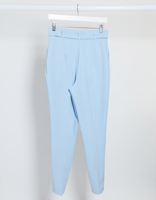 ASOS DESIGN high waisted belted cigarette trouser in pastel blue