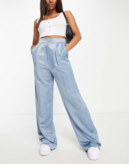 Evening Memories Duck Egg Blue Satin Wide Leg Trousers Club L