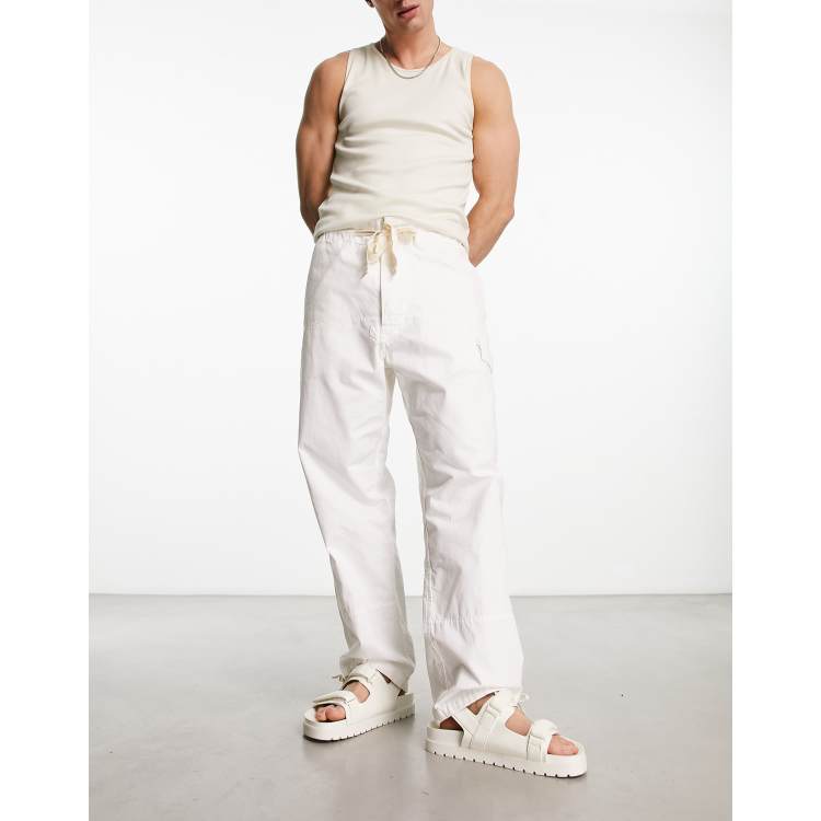 White clearance canvas pants, Coulisse wide leg trousers clearance