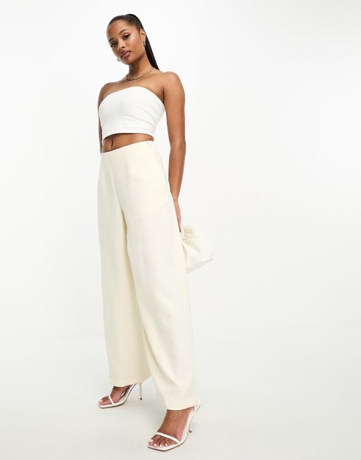 NEW WOMEN S High Waisted Cream Wide Leg Palazzo Trousers White eBay