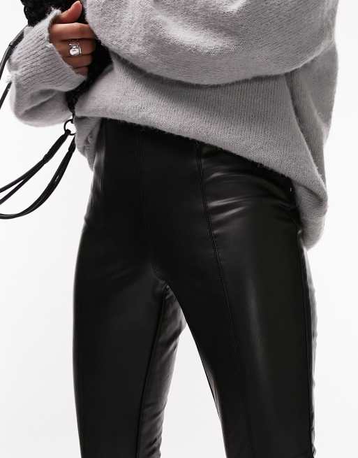 Topshop black faux clearance leather skinny trousers, Topshop faux leather contrast panel seamed skinny flare with split hem in chocolate clearance