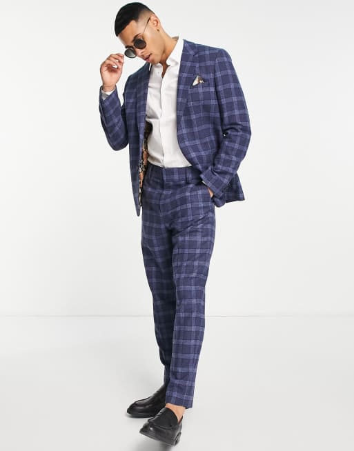 Latest Coat Pant Designs Classic Plaid Suit Men Royal Blue Wedding