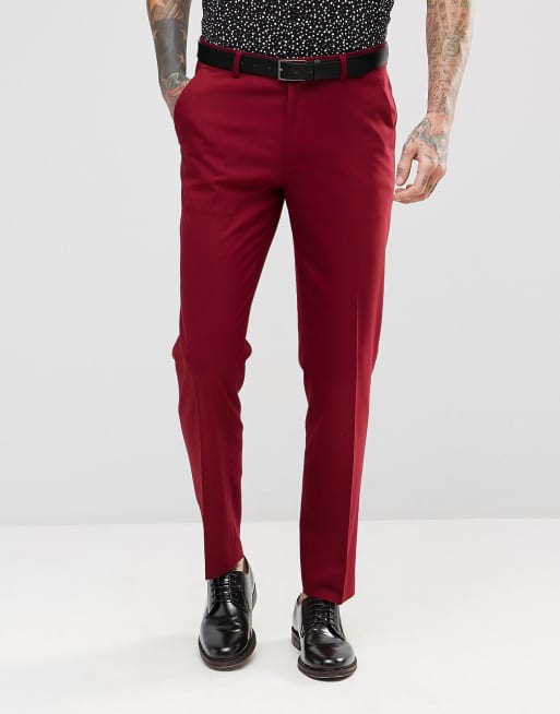 Red clearance tuxedo pants, ASOS Skinny Tuxedo Trousers With Satin Side Stripe in Red for Men clearance