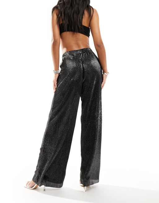 Black glitter wide clearance leg trousers, CurveWow Glitter Wide Leg Trouser Multi Sparkle Curvewow clearance