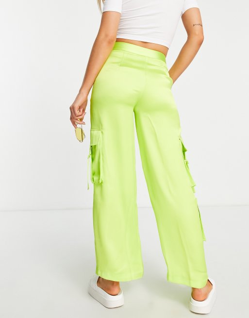 Pockets For Women Yours Curve Lime Green Wide Leg Crepe Cargo