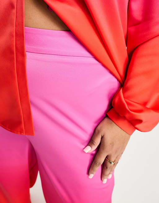 Flounce London Plus pleated wide leg satin trousers in pink and red ombre