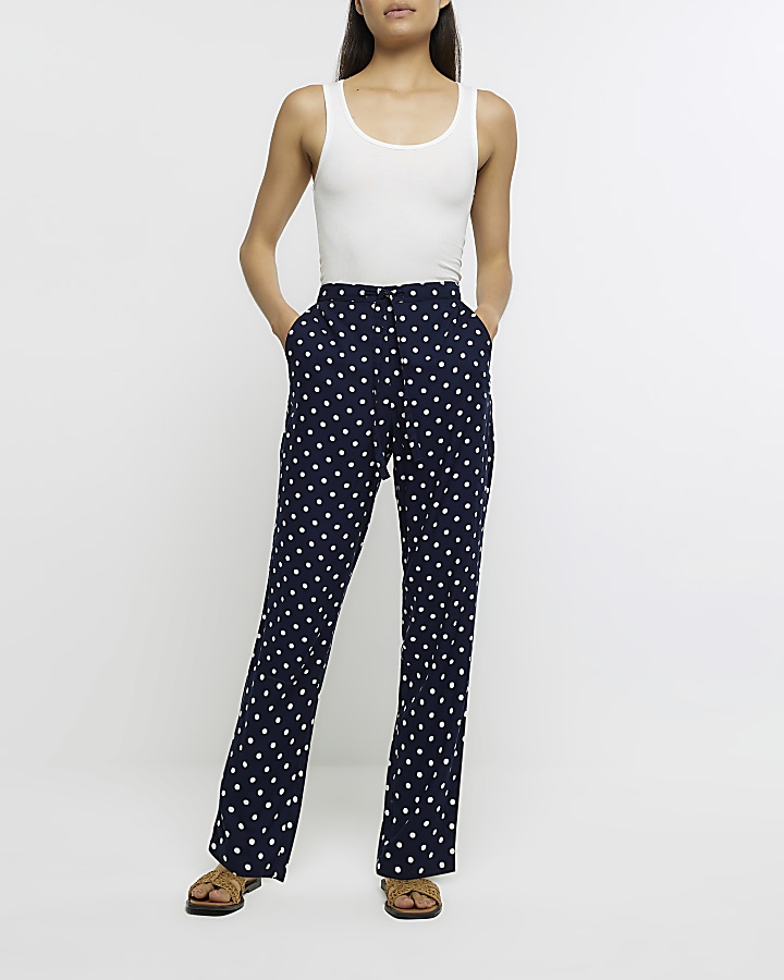 Navy polka dot tie waist trousers