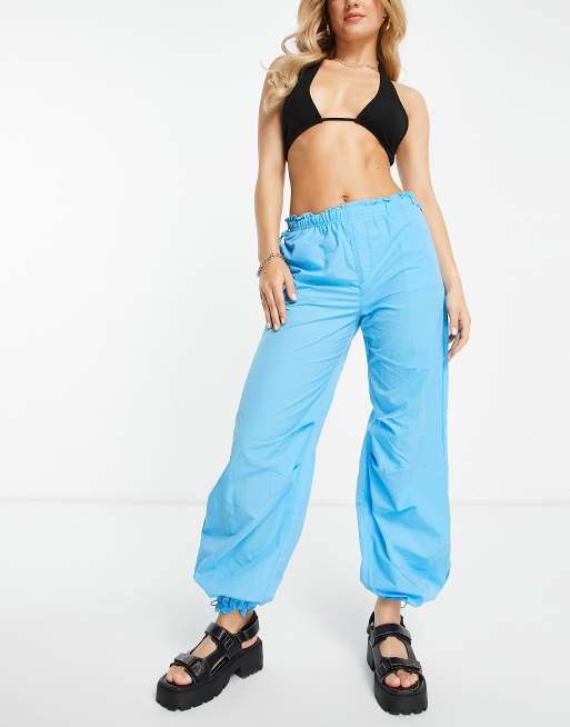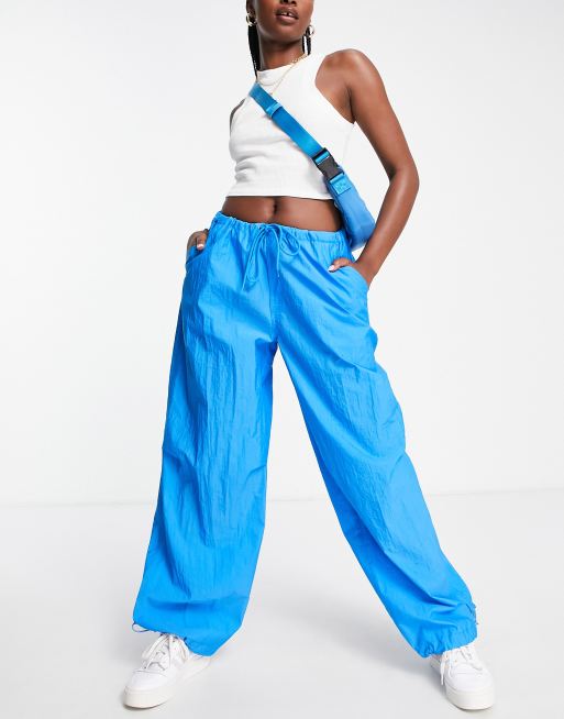 Topshop oversized balloon nylon parachute trouser in blue ASOS