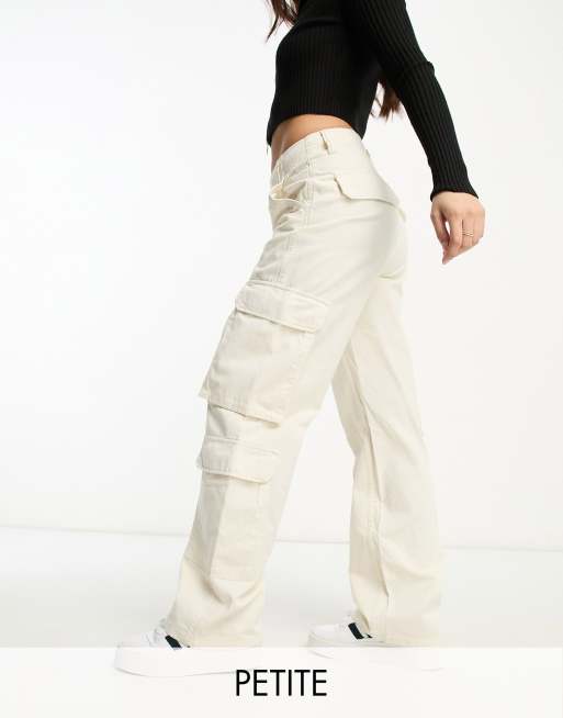 Bershka Petite drawstring waist cargo trousers in white