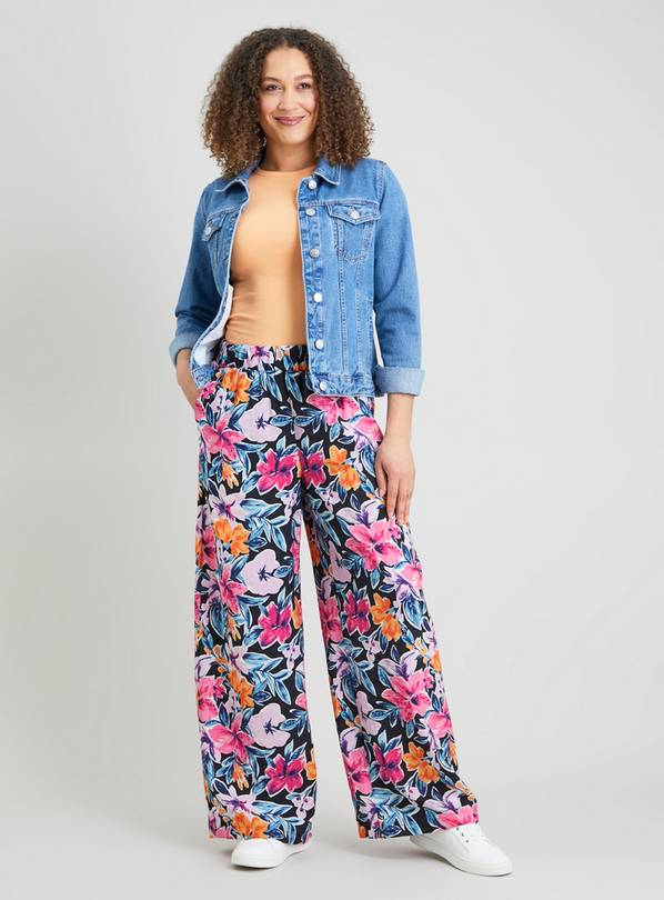 Buy Watercolour Floral Print Wide Leg Trousers 22R Trousers Tu