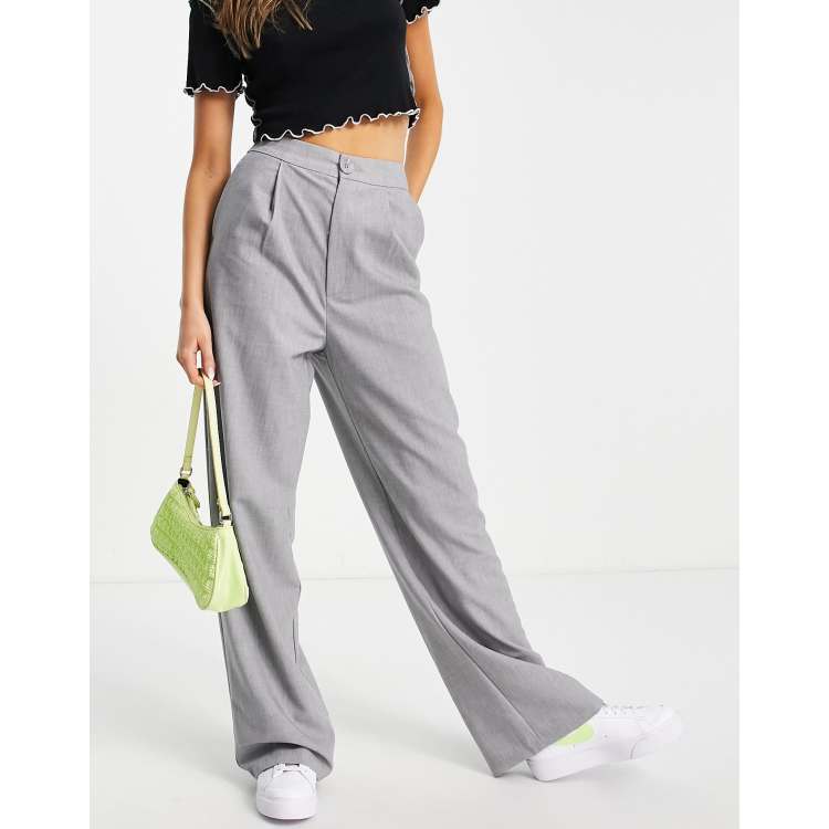 Stradivarius Petite tailored wide leg trouser in grey