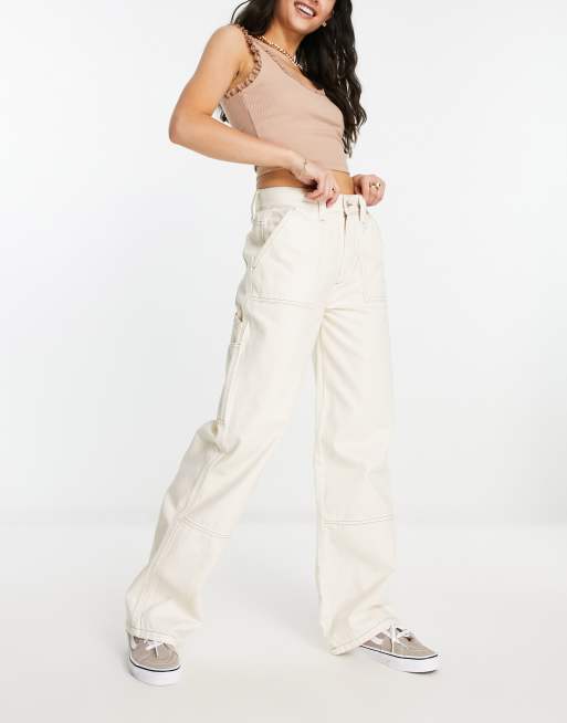 White contrast stitch clearance trousers, Bershka high waisted contrast stitch baggy cargo jeans in white clearance