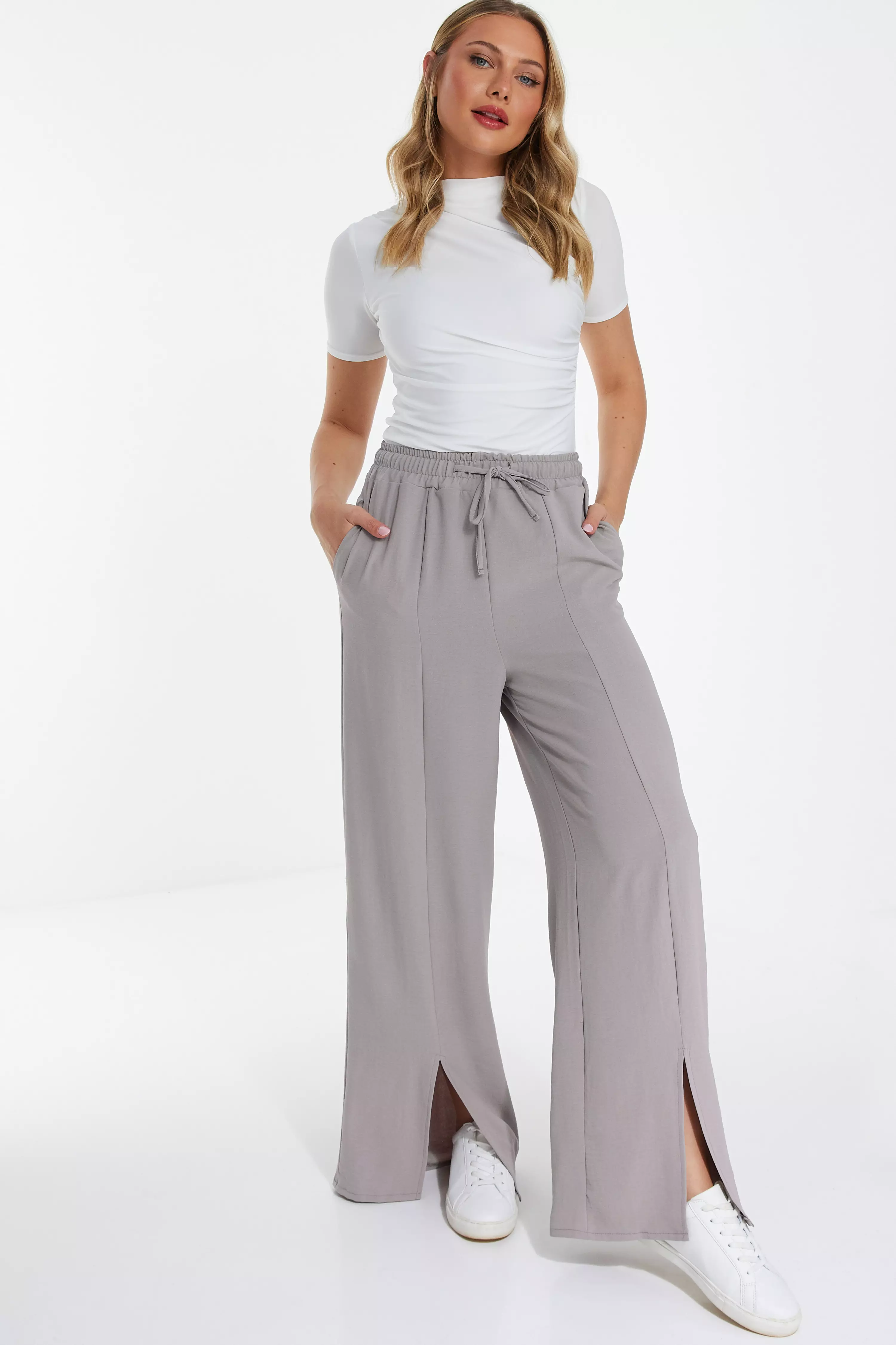On Your Radar Grey High Waist Split Hem Trousers Club L London UK