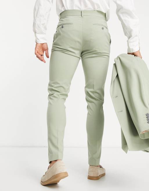 Sage green mens clearance pants, Sage Green Pleated Chino Trousers Peter Christian clearance