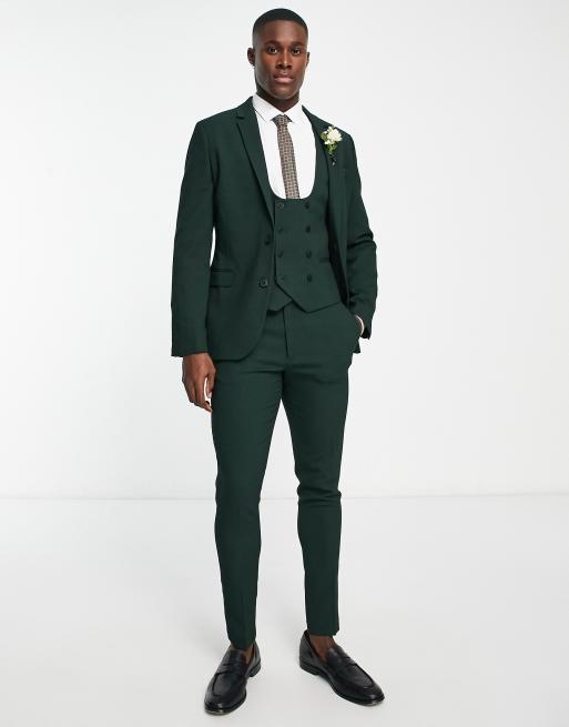 ASOS DESIGN wedding super skinny suit trousers in micro texture in forest green