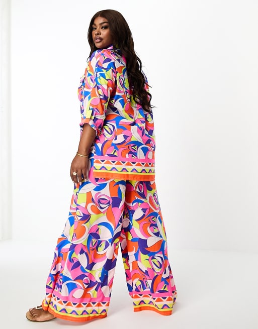 Blue clearance printed palazzo, River Island Plus co ord abstract print beach palazzo trousers in clearance