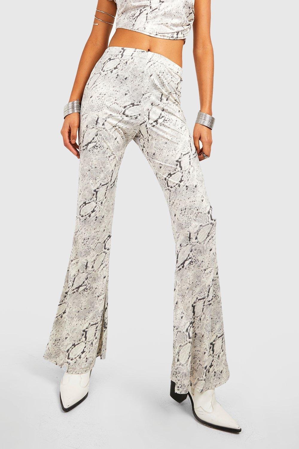 Drive Em Wild High Waisted Wide Leg Trousers in Grey Snake Print