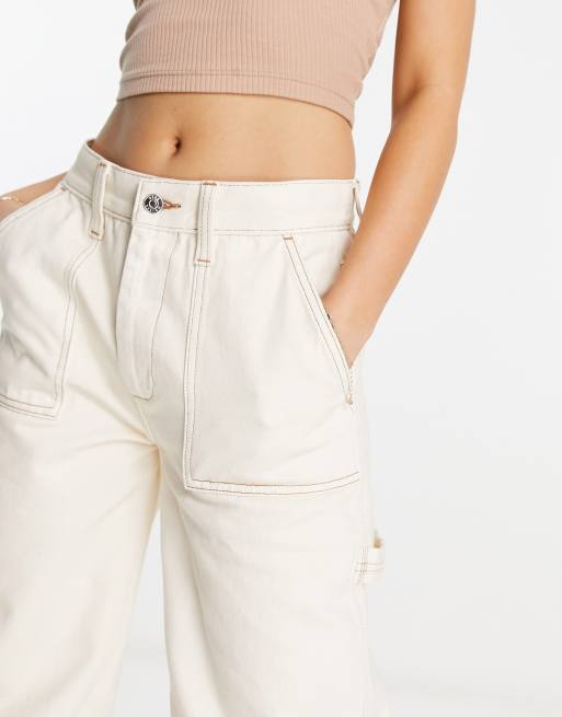 ASOS DESIGN cargo jean in off white with contrast stitch