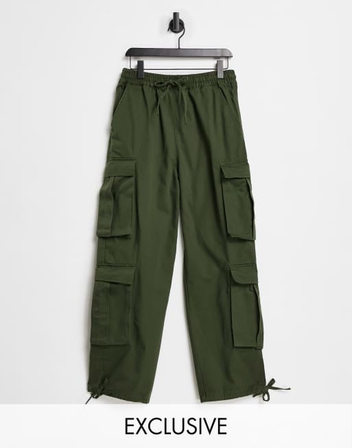 COLLUSION Unisex low rise baggy utility trousers in khaki