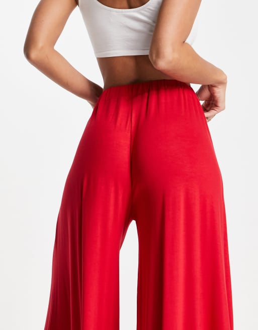 ASOS DESIGN jersey palazzo beach trouser in red ASOS
