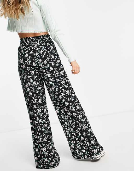 Black and white clearance floral pants, Black Floral Print Wide Leg Trousers Roman UK clearance