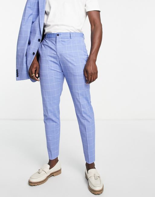 Men s Blue Check Slim Fit Suit Trousers
