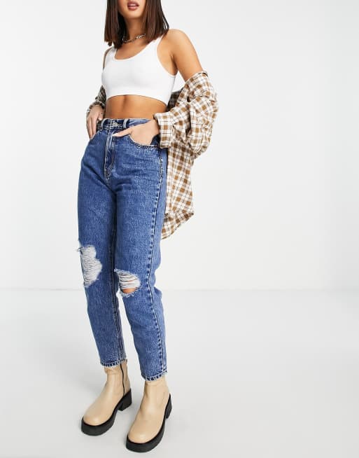 Dark blue mom clearance jeans ripped, Buy Dark Blue Rip Knee Mom Jeans from the Next UK online shop clearance
