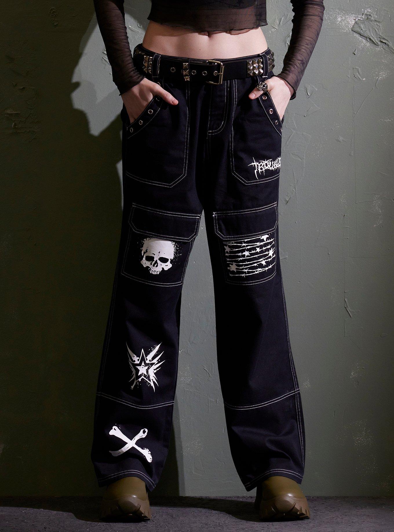 Hot topic goth clearance pants, Black Punk Patch Wide Leg Denim Pants Hot Topic clearance