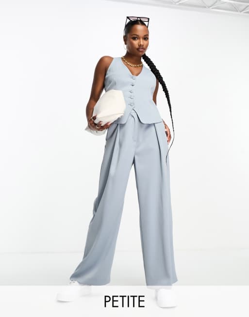 River Island Petite co ord wide leg tailored trousers in light blue