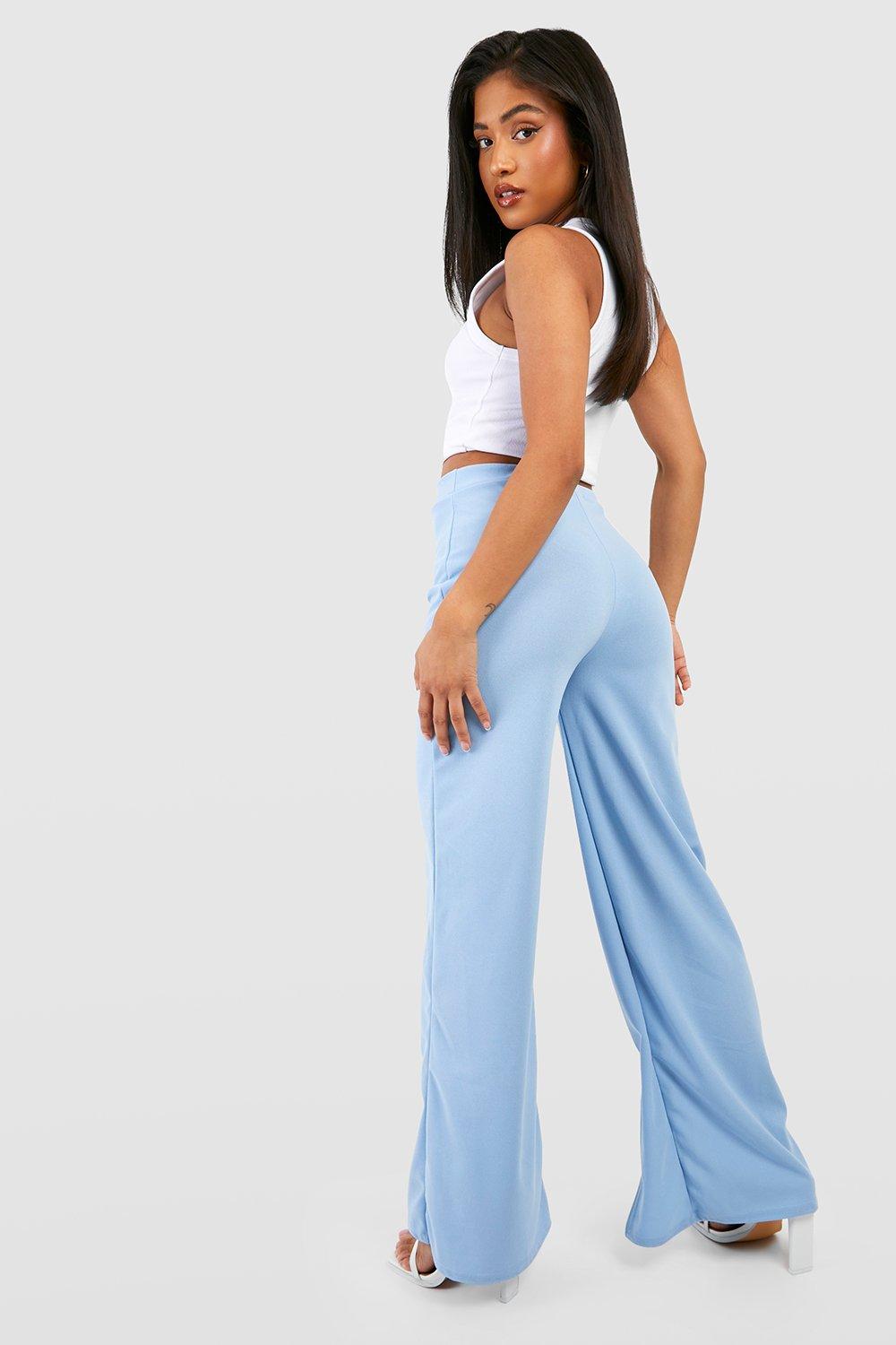 Petite clearance blue trousers, Petite Sky Blue Marl Knit Fold Over Yoga Trousers PrettyLittleThing clearance