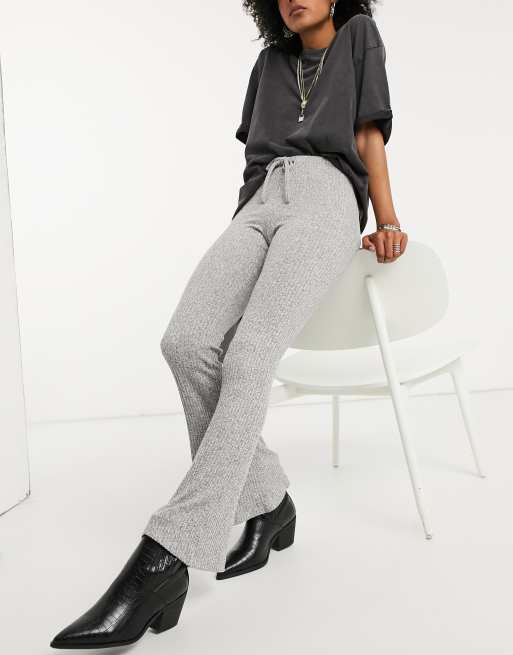Ribbed clearance grey trousers, Petite Light Grey Ribbed High Waisted Trousers PrettyLittleThing clearance