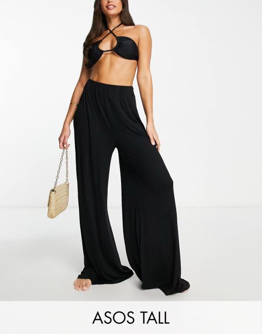 ASOS DESIGN Tall jersey palazzo beach trouser in black