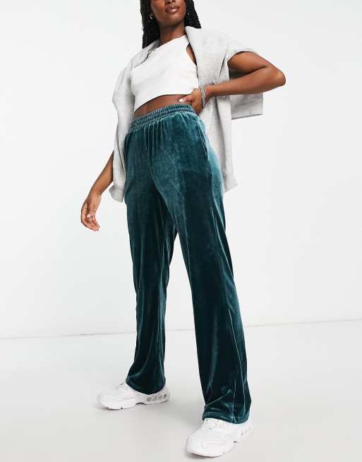 Urban Revivo straight leg velour trousers in dark green ASOS