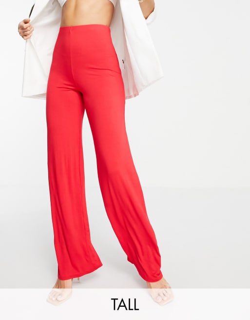 Flounce London Tall high waisted wide leg pants in red ASOS