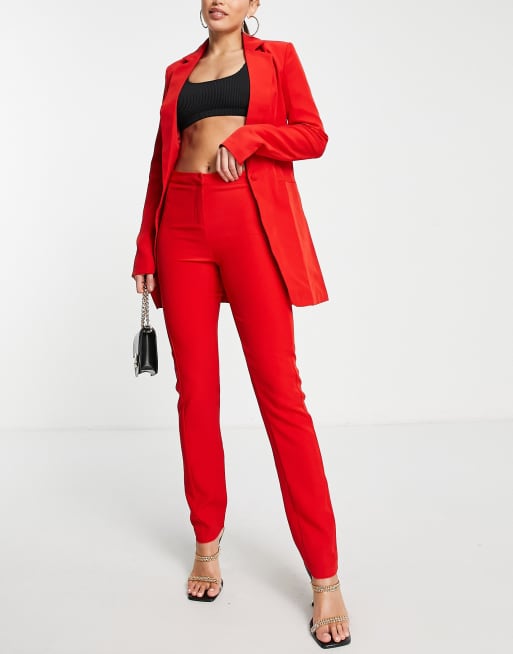 Tall Red High Waisted Tailored Pants PrettyLittleThing