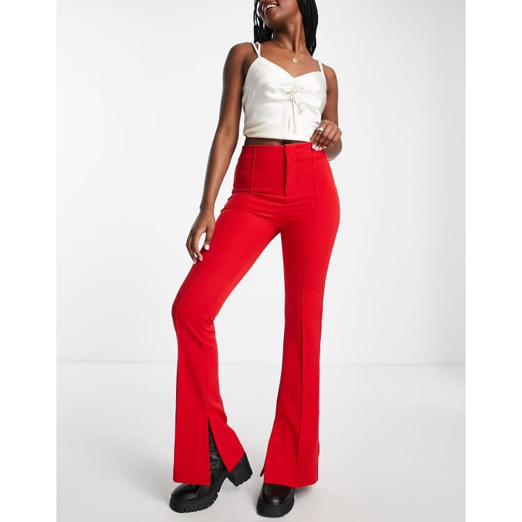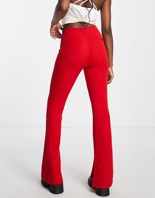 Red split hem clearance pants, Plus Premium PU Leather Look Split Hem Trousers clearance